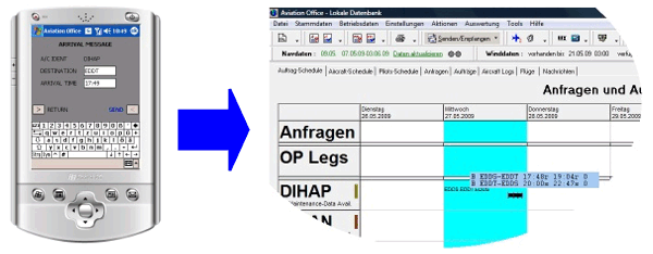 Neben dem Verschicken von Start- und Landemeldungen können mit der MDCA während der Flugdurchführung zusätzliche Daten erfasst werden. Diese werden dann nach Abschluss eines Fluges an Aviation Office übermittelt und bilden die Grundlage für die so genannten Aircraft-Logs.![]() |